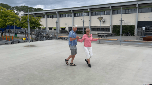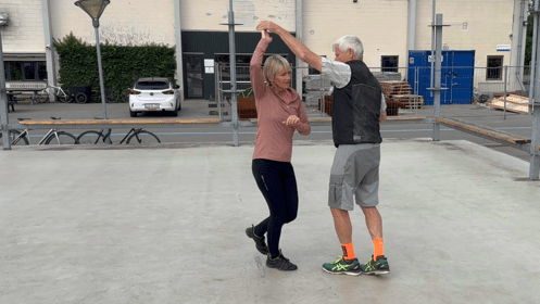 We can start Exhíbela from Paséala or directly from Caída start position (aka DQN start position). Exhíbela is a walking turn, uniquely Cuban, consisting of two 180 degree pivot half turns on “3-5” and “7-1”. That is, the Follow walks forward on “1-2-3”, turns right, and back again on “5-6-7” and turns right, etc. Extra turns can be added to